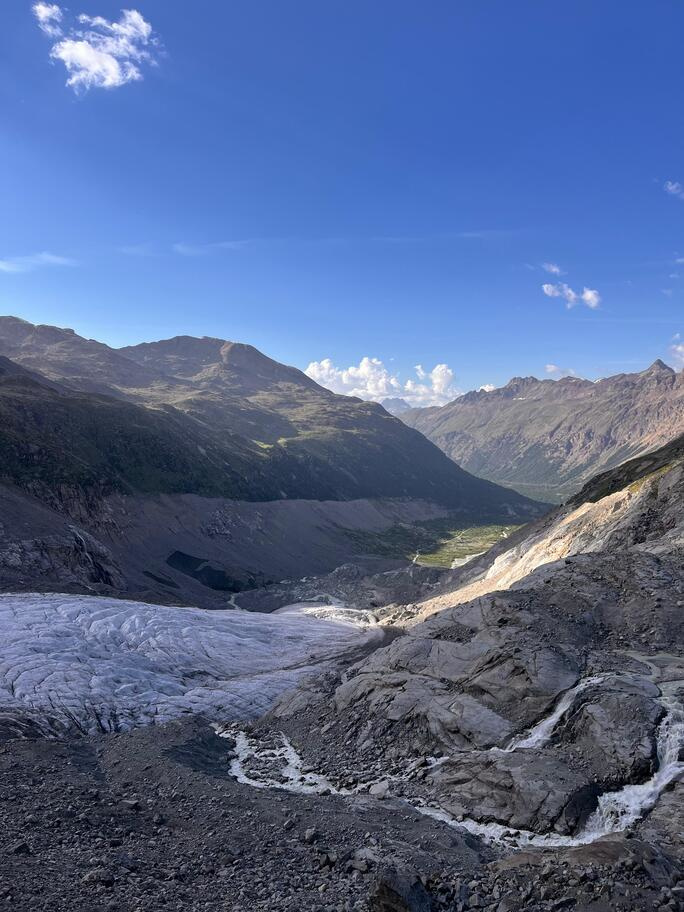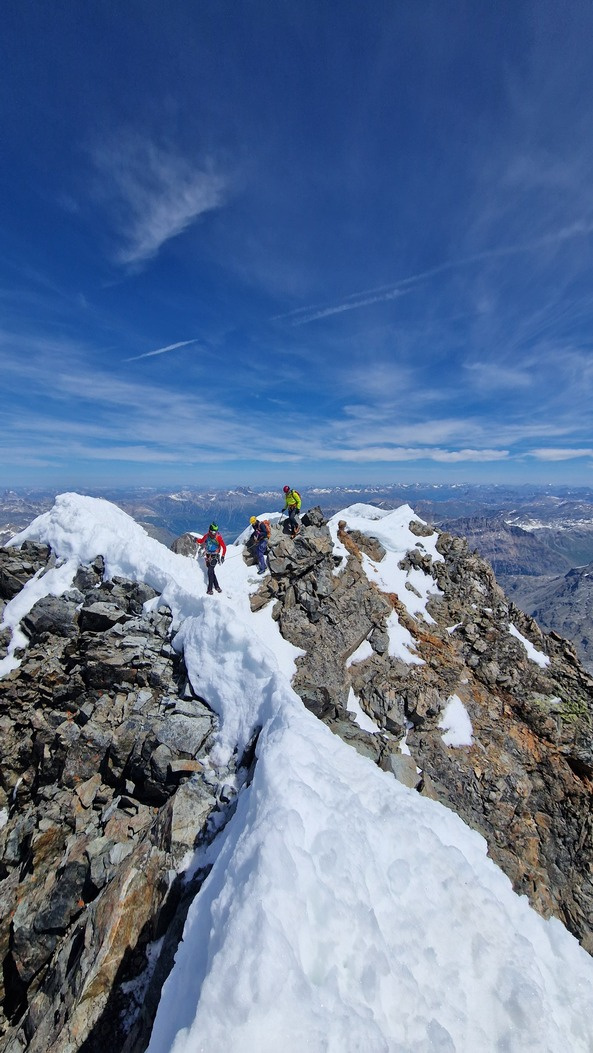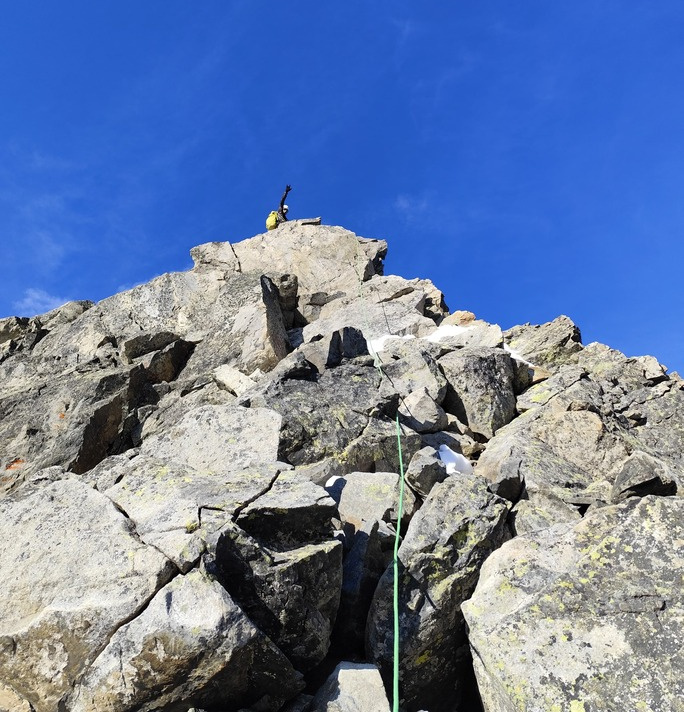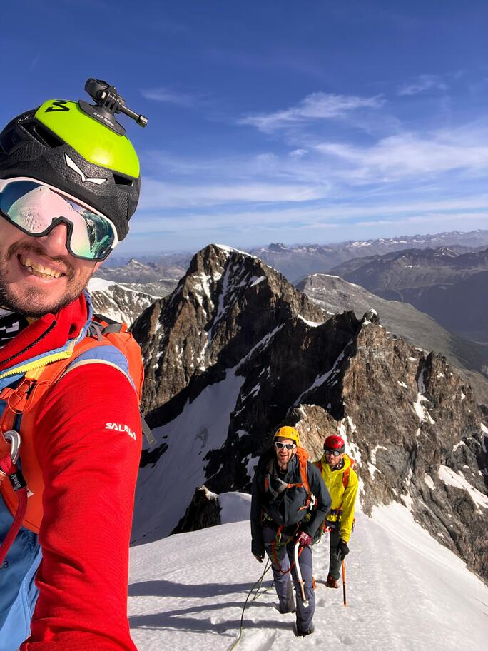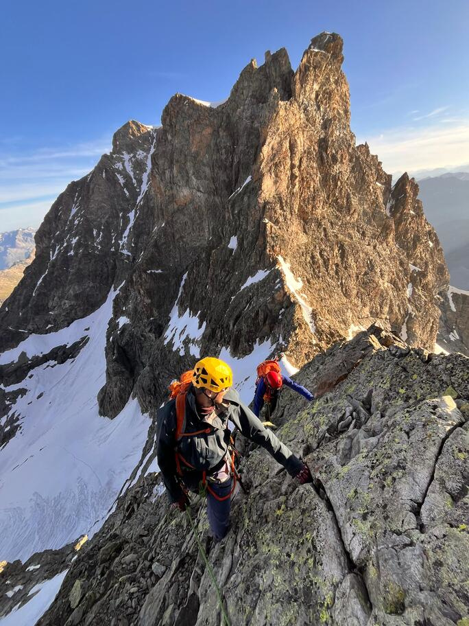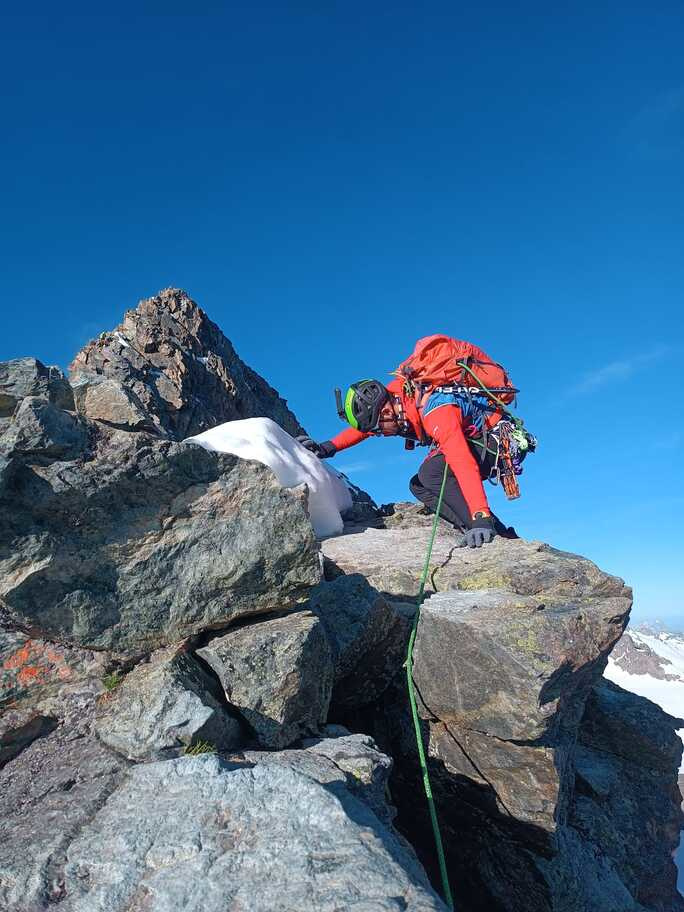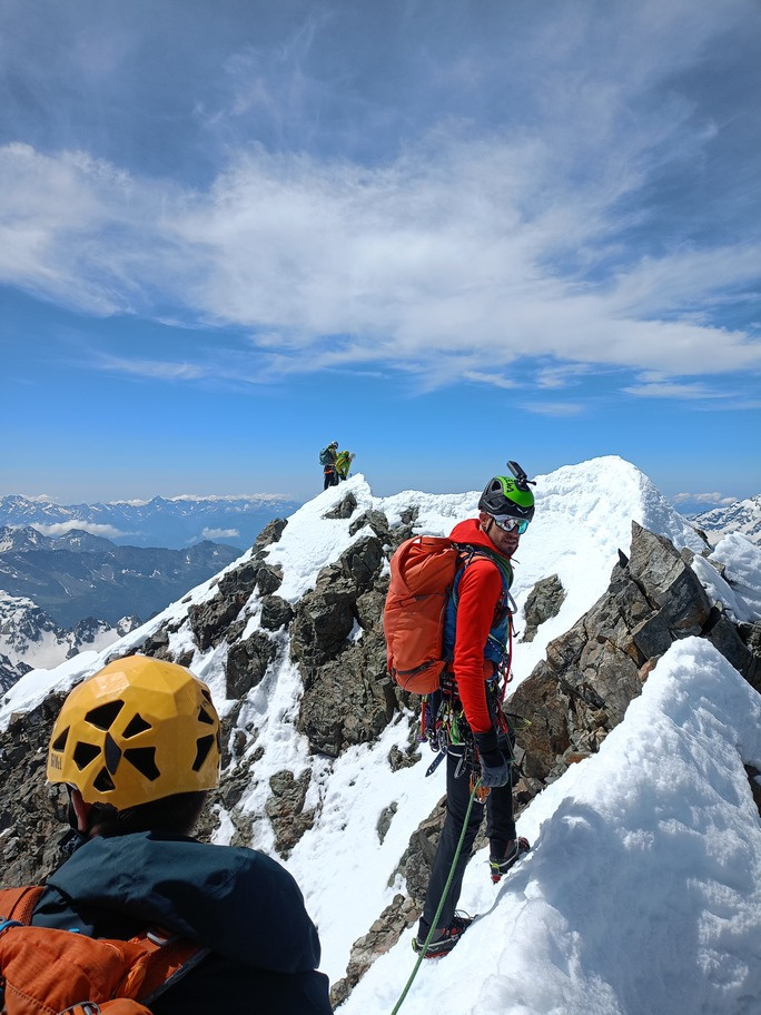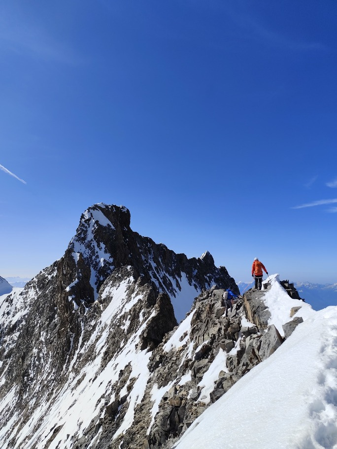 View route detailsHow nice summer is—it's hot, deadly hot, and the only way to survive is to go up into the high mountains! Ah no, I forgot… it’s actually spring. Anyway, in view of the upcoming aspirant course module, we decide to stretch our legs in the Engadin, where temperatures are considerably milder. After a little carriage ride—noblesse oblige—we head to the Tschierva hut, where a generous dinner awaits us. Just enough time to realize it’s already time for bed, and the alarm is already ringing… We set off across the moraine and quickly reach the Forcola Prievlusa (which I enjoy misnaming, given its rather unfortunate name). From there we calmly reach the summit, finding the route in excellent condition. Less fun is the descent from the “fortress” (not exactly well tracked), on very heavy, slushy snow. To top it all off, since we started like nobles, we return like nobles too—with a nice taxi ride back to the cars in Pontresina.