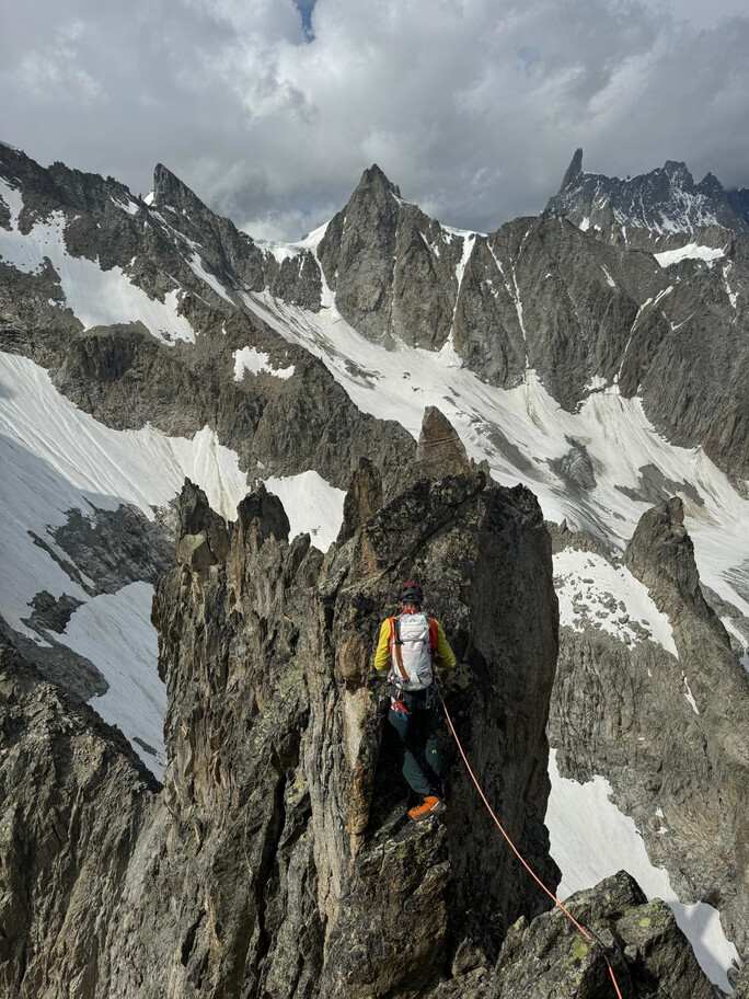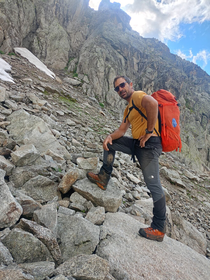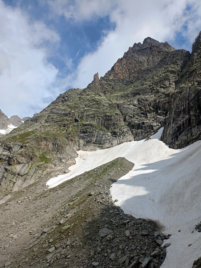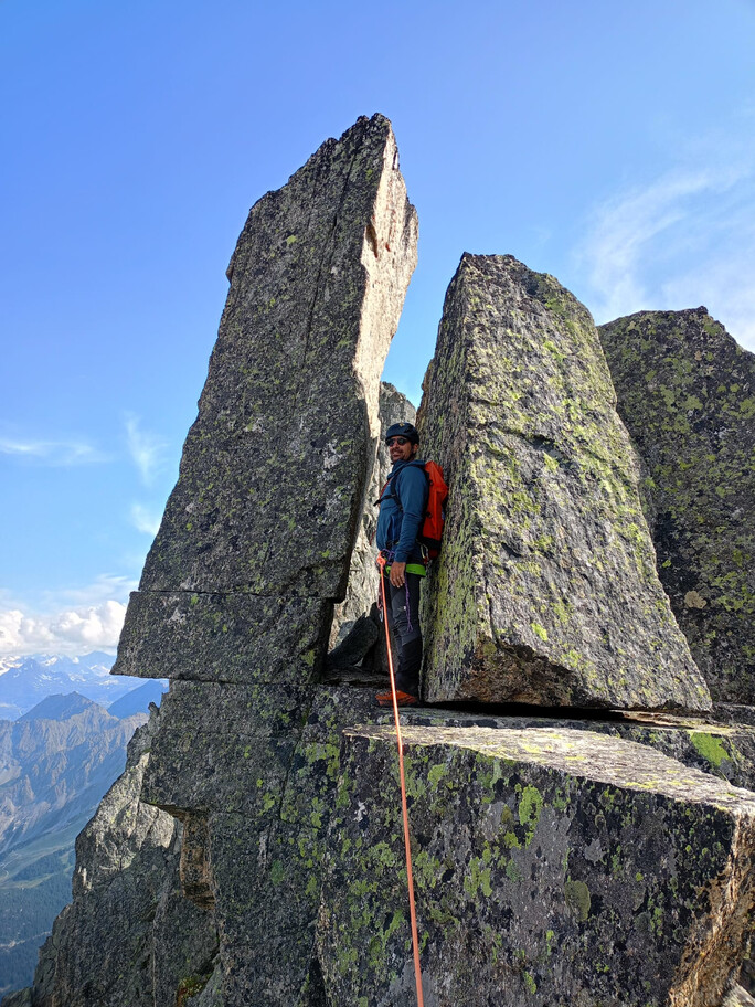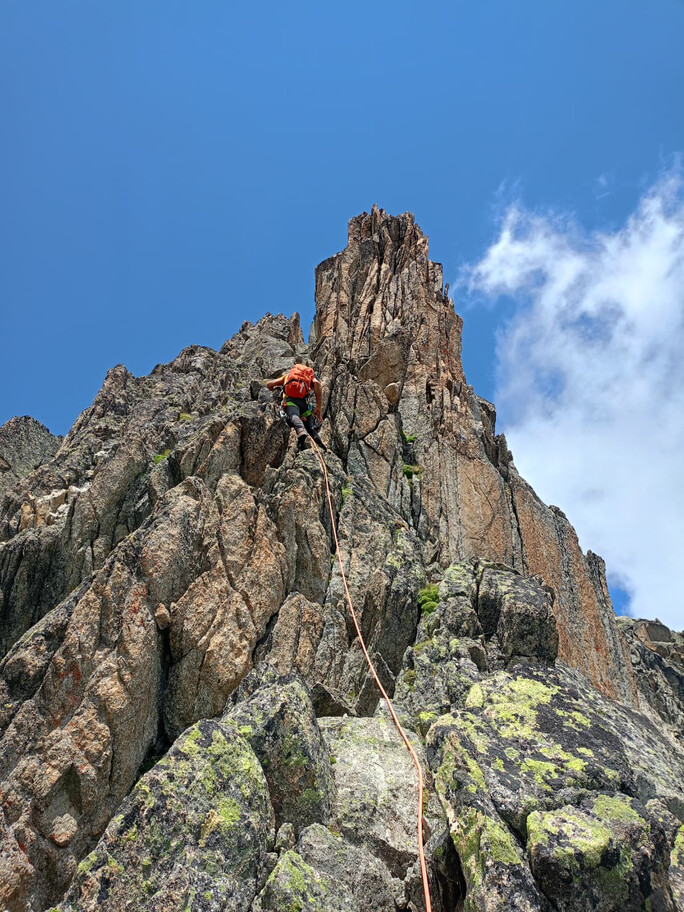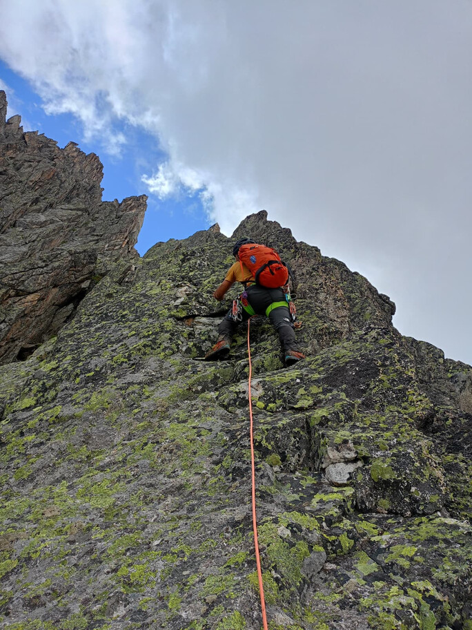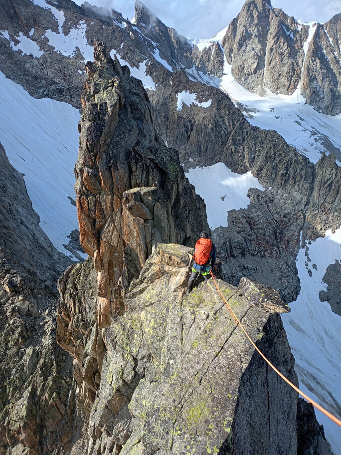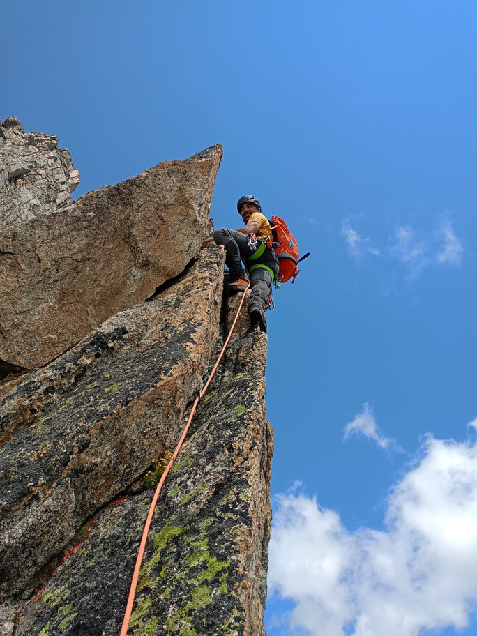 View route details“Come on, what’s the big deal—it’s a ridge on rock, and on this terrain we can move fast.” Not that the statement is wrong, but the route is actually very complex and long, so in the end we have to descend on foot… and the former ski slopes of the Pavillon are a real torture. A beautiful climb—long and exposed—in the company of Nicola, with whom I am preparing for the mountaineering exam.