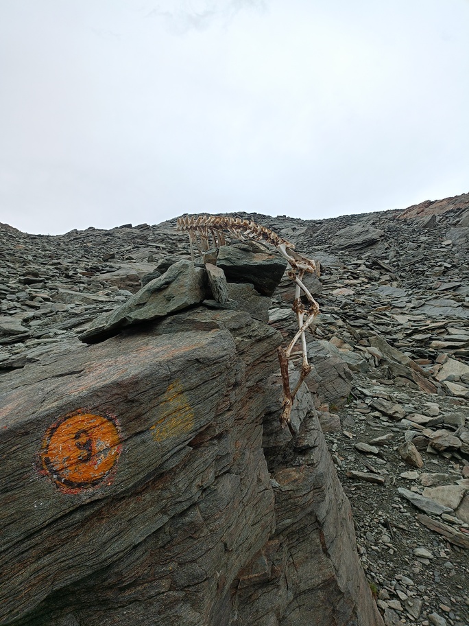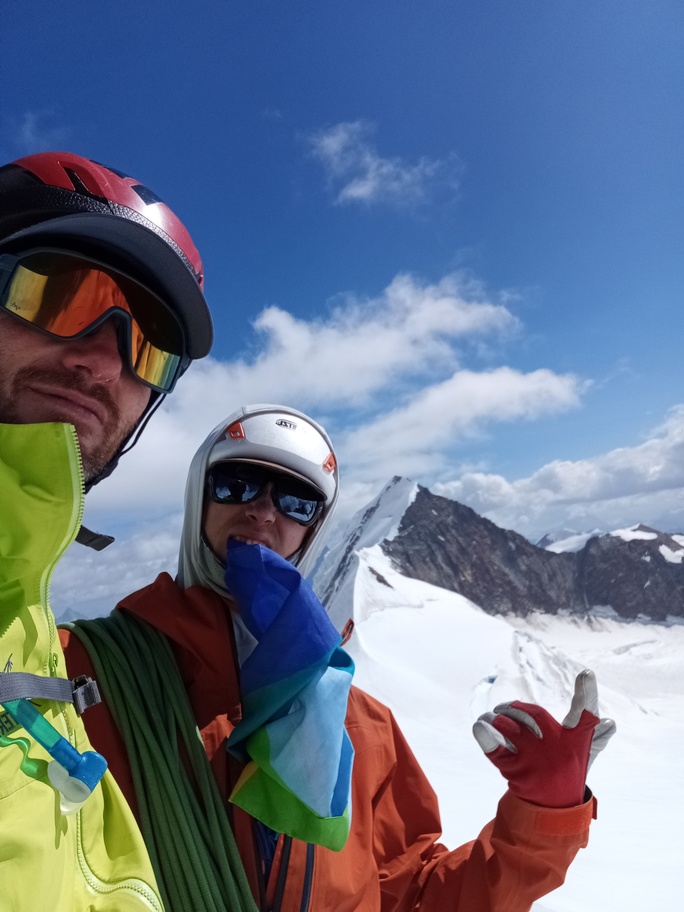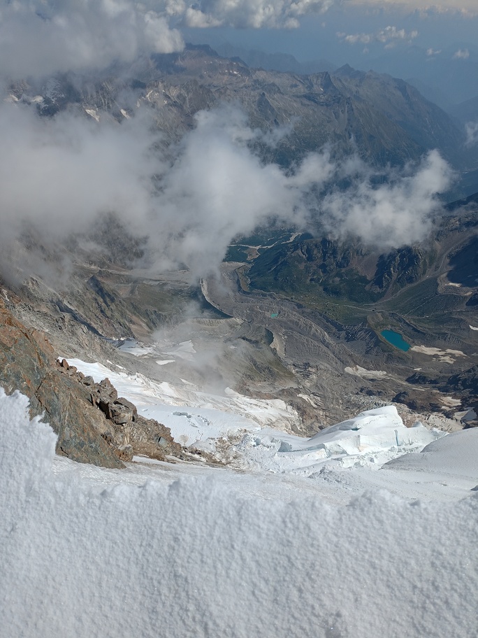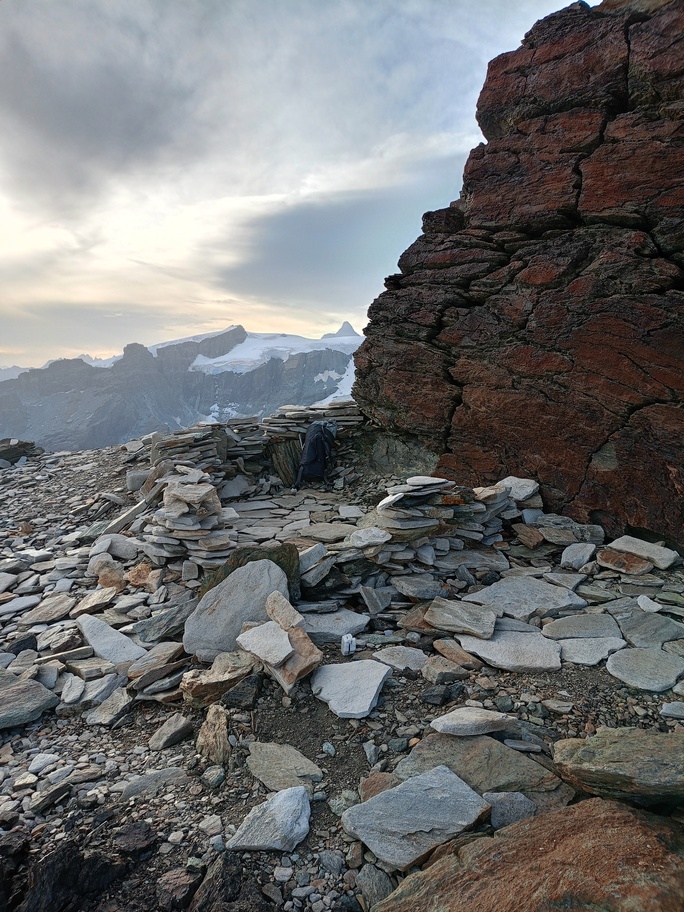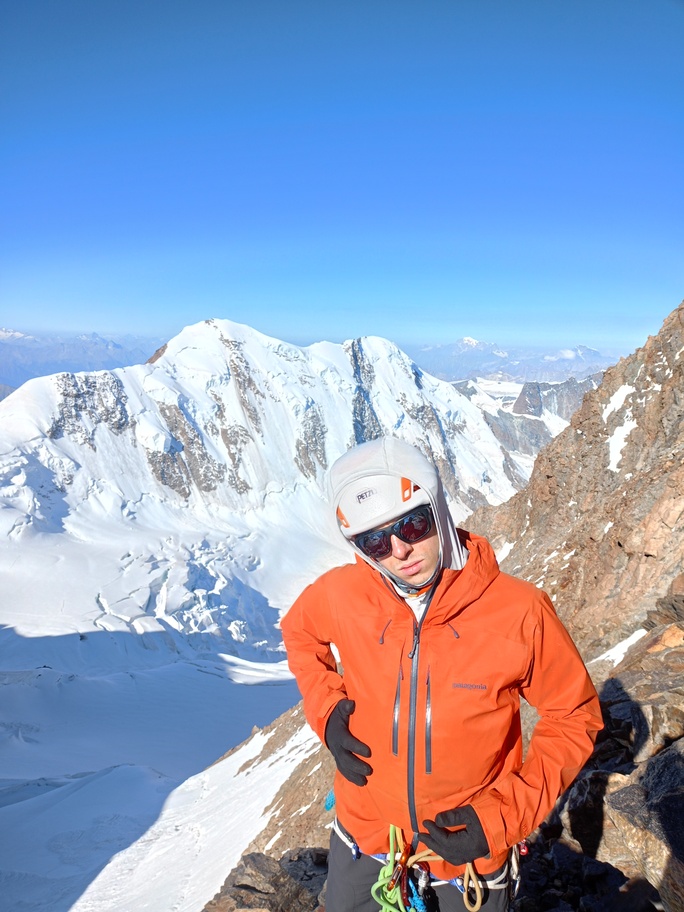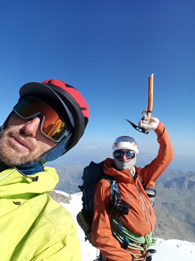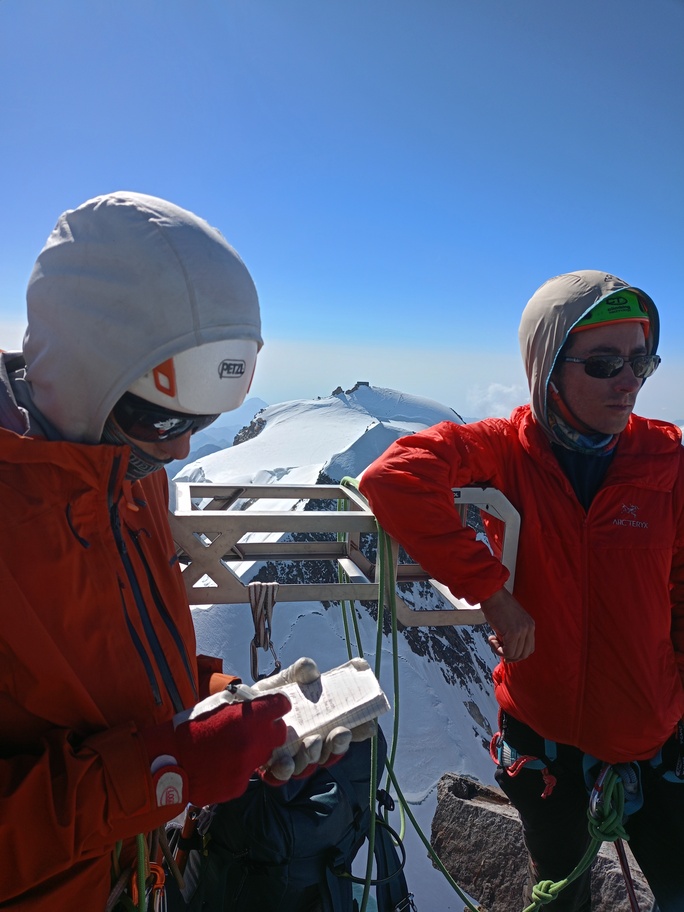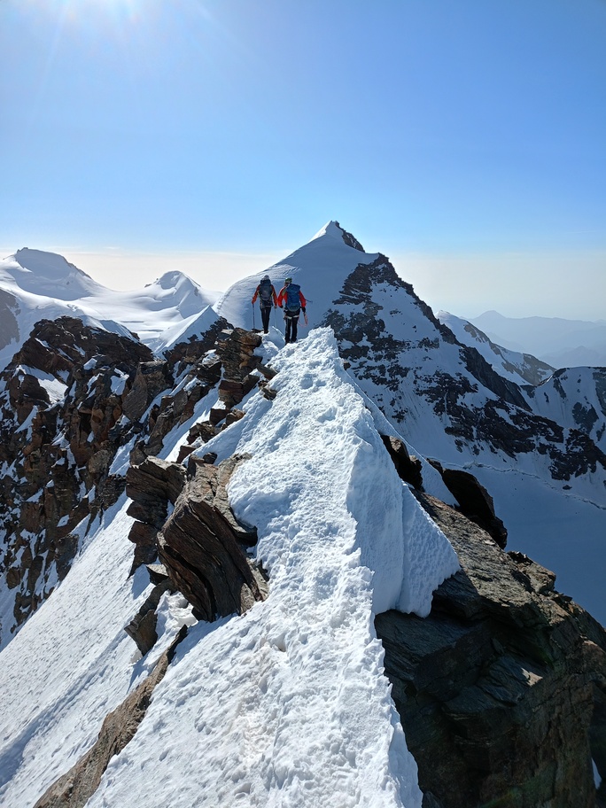 View route detailsIs there anything more fascinating than a rendezvous at the Balmenhorn? Perhaps a meeting at the Felik Pass… That’s how this next little segment of the journey with Teodoro begins. Bad weather prevented him from crossing the Lyskamm traverse, so when I call him I find out he’s at the Rossi e Volante hut instead of the Balmenhorn. Luckily, cable cars exist, so I buy a “grand tour” ticket and set off. At Pianalunga everything is still—then the perfect storm begins, with hail and lightning—but I get lucky. There are plenty of people needing to get back down to Gressoney, so as soon as the lightning stops, operations resume. In my mind I’m facing a five-hour walk to the Quintino Sella Hut, but by a hair’s breadth I manage to catch the penultimate cable car to Sant’Anna and then the gondolas. A beautiful night under the stars, and we set off. We are perfectly on time. Five minutes after I arrive at the Felik, I hear a shout: “Fre! We’re here!” I continue alone across the Lyskamm ridge—a rope team of three wouldn’t make sense here. When we reach the Balmenhorn, Enrico is tired and stays behind to melt snow and keep our spot for the evening. Teo and I climb a few surrounding peaks until our stomachs start rumbling more than usual, and we return to the bivouac, where we devour three packets of food, polenta, and a bar of chocolate. After a somewhat restless night, we set off again and climb the Parrot Peak, stopping for breakfast with a slice of pizza at the Capanna Margherita. After an hour’s break we get moving again and, at a very relaxed pace, catch up with the rope teams that had left two hours before us near the summit. I say goodbye to the guys heading down toward Zermatt, and three hours later I’m in Indren.